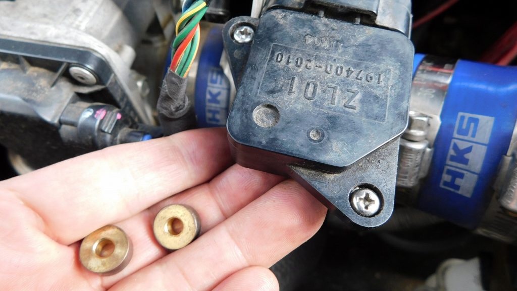 It doesn't become it between "Pipe" and "Sensor" = meter if it doesn't turn a screw though it only has to remove two screws from part suction "Pipe", and to remove the air flow meter ..parts (The HKS Co. is naming collar) parts of a fat washer (Refer to the image) ..between the screws…. though it is including scissors.