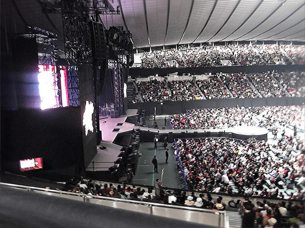 ↓いきなり内部(代々木第一の私の席=Kの最前列の画像)の開演直前の画像です。