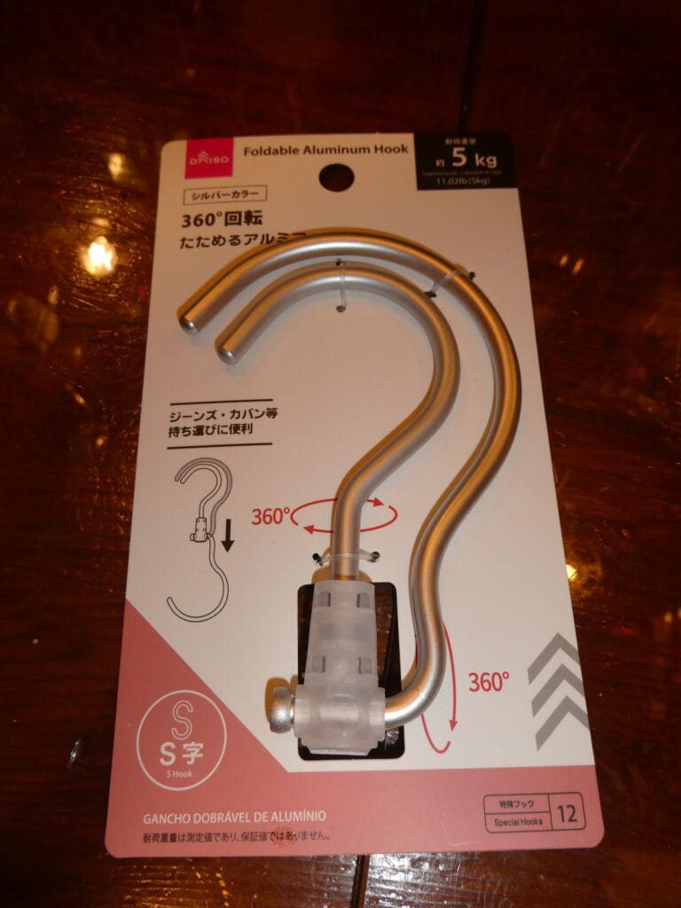 購入可能な360°回転出来るアルミ製のS字フック(100円)